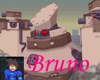 This fight is perfect for using the Shield Arm. Nothing Bruno does can penetrate the shield, which makes the ideal for a more aggressive approach to fighting him. You don't have to worry about ducking behind a building to avoid the plasma shots; just put the shield up. Heck, you even have a degree of safety while standing in front of him, if you so desire. The short burst of speed gained while dropping the shield is a nice bonus, as you can always use the extra maneuverability. Coupled with a strong buster, you have a very nice and easy way of taking him out.