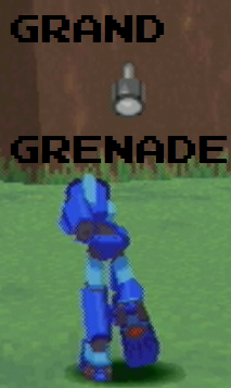 The way this weapon is used, you throw it, and a rather nice-sized explosion comes from whatever the Grenade hits. The grenade also produces after-explosions too, which damage any nearby enemies. This is the most powerful thrown weapon in the game. (All 2 of them, 3 if you count the Splash Mine as being thrown, as they all have a hand symbol for their weapon, but I digress.) It also destroys dirt walls in the ruins, which can come in handy.
