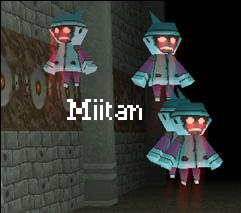 Miitan are found mainly in Nino Ruins, although you can pretty much find a couple of em' lurking in most of the minor ruins throughout the game, as well as Saul Kada. Given their attack pattern, they seem to be an upgraded Foo-Roo from Kattelox. Those little guys needed a better design; they were quite boring.