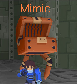 Mimic looks like a treasure chest until opened, in which case diggers are in for quite a shock. The first variations encountered were littered in the sub-ruins of Kattelox. When opened, they would fire multiple bombs at a rather high rate of fire. If you didn't (or wouldn't) move out of the way quickly enough, you'd be in for quite a bit of pain. There was also a message that popped up saying, "It's a trapped box!"; bet you wished they would've told you that before you opened it!